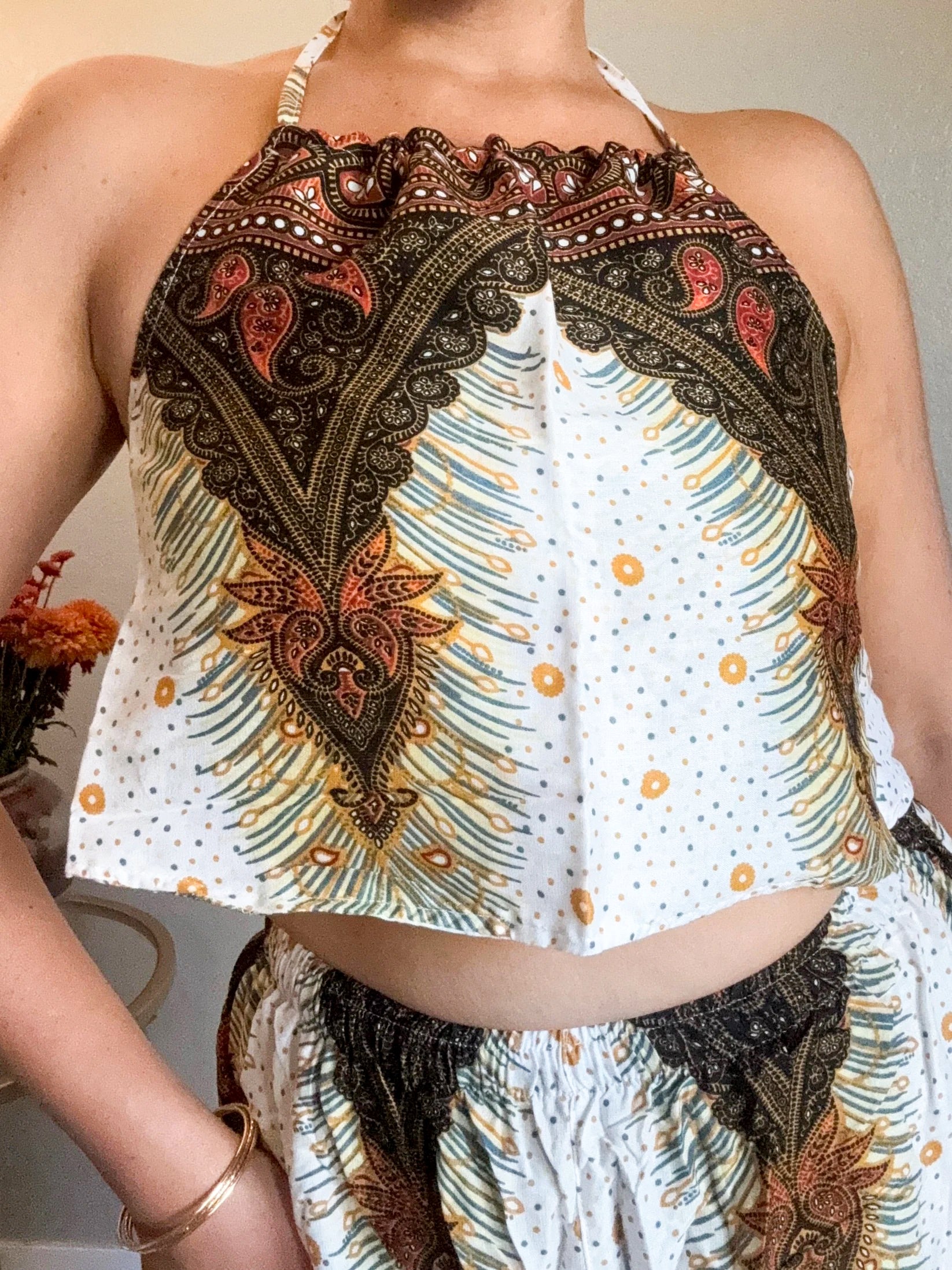 This Joy Halter Top is a flirty little freedom spell—light as a breeze and soft on the skin. With its flowy silhouette and adjustable ties, it flatters a wide range of shapes and sizes while offering that effortless, undone beauty we all crave. Whether you're twirling through a market or lounging under the stars, it’s your go-to for those “I feel amazing” days.